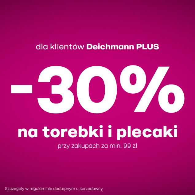 Teraz w DEICHMANN torebki i plecaki przy zakupach za min. 99zł dla klientów Deichmann PLUS z rabatem 30%! Tak, tak! 30% na torebki i plecaki przy zakupach za min. 99zł! I takie RABATY to my rozumiemy!